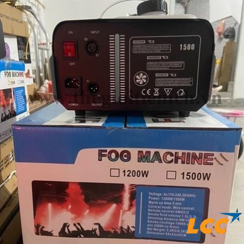 Máy phun khói 1500w đổi màu sử dụng bơm 31w cho ra tốc độ phun 20000cuft/min. Thời gian khởi động của máy mất khoảng 5-7 phút sau khi khởi động xong là máy sẽ phun được. Tuy nhiên quá trình hoạt động của máy tuân theo một vòng tuần hoàn là sau khi phun xong một đợt máy sẽ dừng lại khoảng 40 giây để làm nóng và tiếp tục phun.